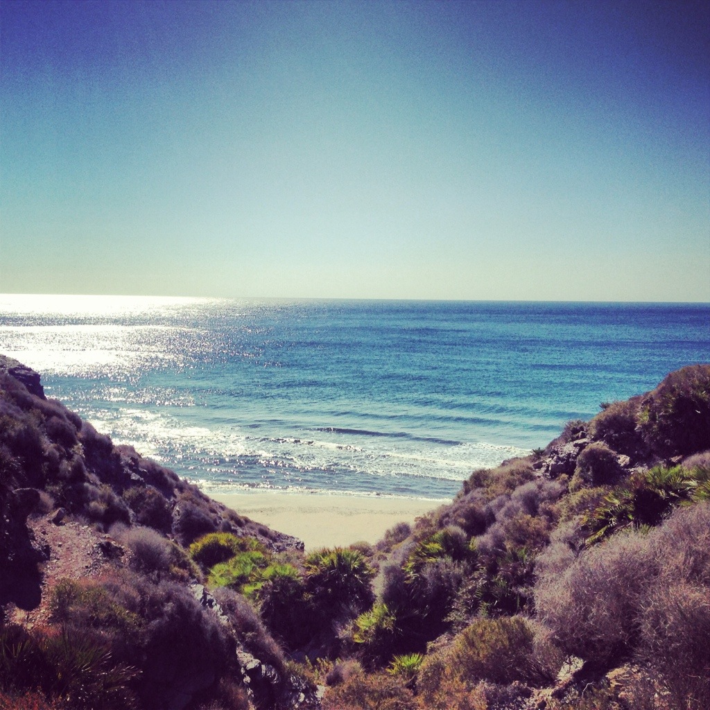 I ran off the beaten track and found a secluded beach. Very very tempted to dive straight in but only had one kiddifree hour so continued along the dusty coastal path.